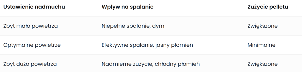 Ustawić siłę nadmuchu tak, aby umożliwić swobodne spalanie drewna.