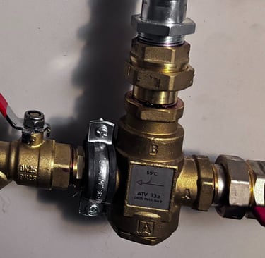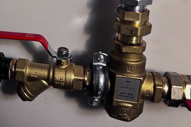 Do momentu osiągnięcia temperatury otwarcia, zawór ATV utrzymuje tzw. krótki obieg – w tym czasie ogrzewany jest jedynie płaszcz wodny kotła oraz krótki odcinek instalacji do samego zaworu. Najczęściej stosowany przez nas model, ATV 55, otwiera się przy temperaturze 55°C. Gdy kocioł osiągnie tę temperaturę, zawór stopniowo zaczyna się otwierać, kierując ciepłą wodę do pozostałej części instalacji, np. do wężownicy zasobnika ciepłej wody użytkowej, aby podgrzać wodę do mycia, lub do układu centralnego ogrzewania, bufora czy sprzęgła hydraulicznego.