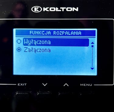 MENU GŁÓWNE → Rozpalanie / Wygaszanie → Rozpalanie